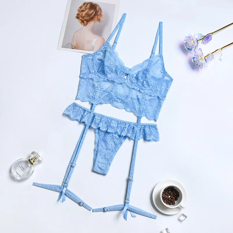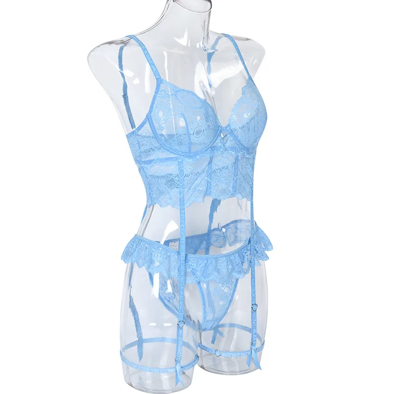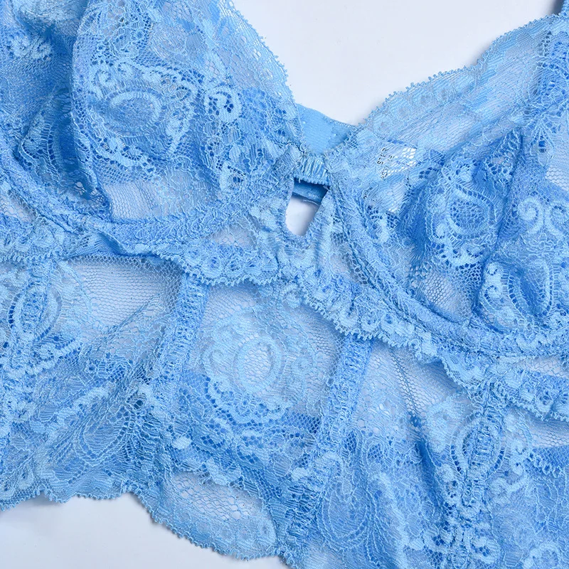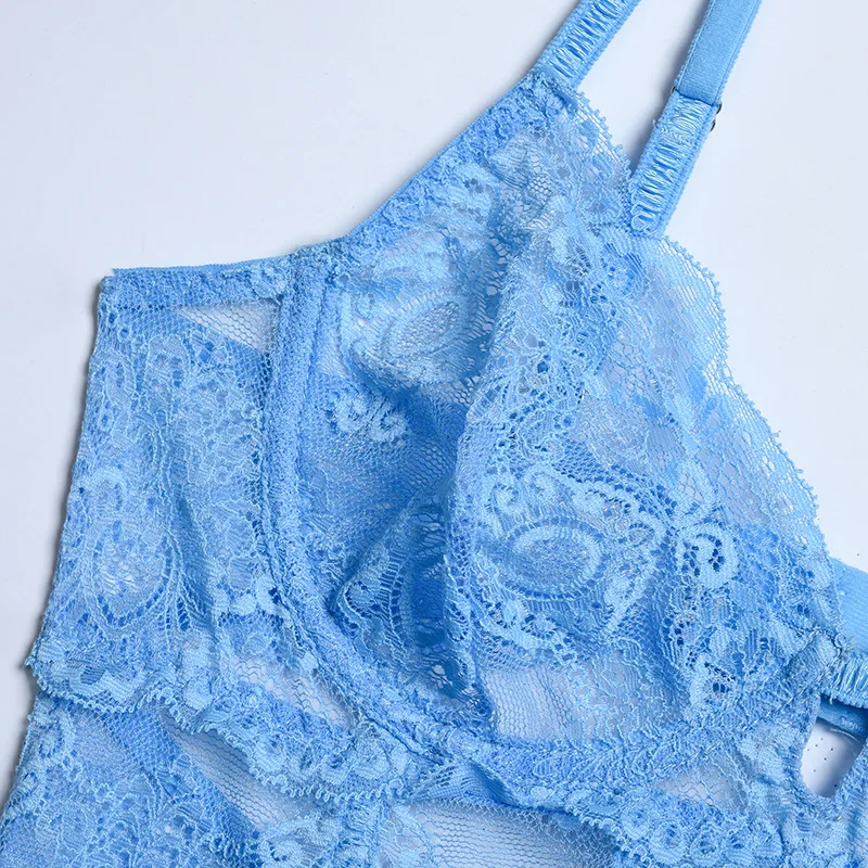 Яскравий і створювальні еротичний комплект із французького ніжного мережива провокує на активні дії! Броскі кольору та відвертої крій ліфа викликає миттєве бажання й приплив пристрасних почуттів! Колір у наявності блакитний.